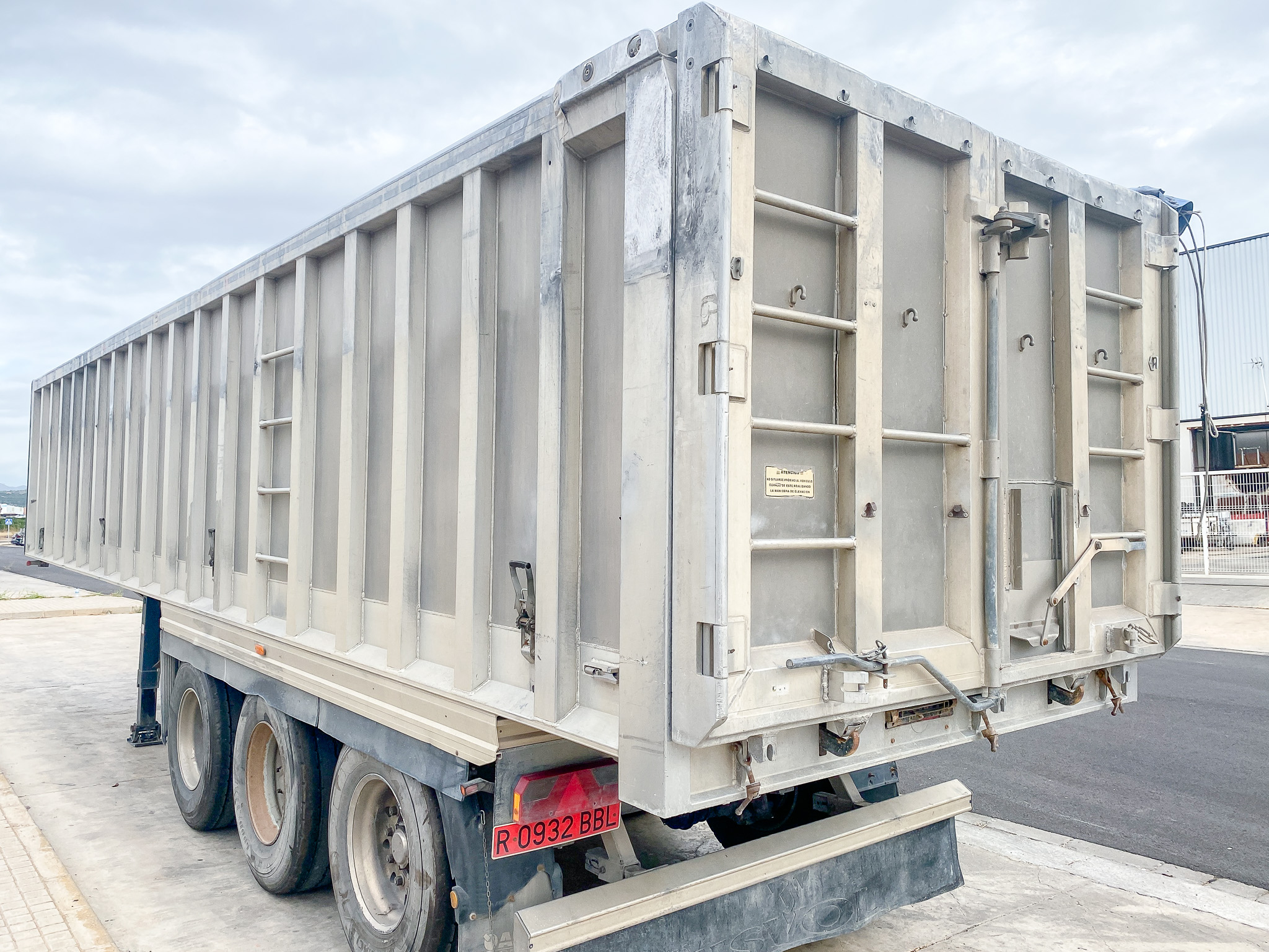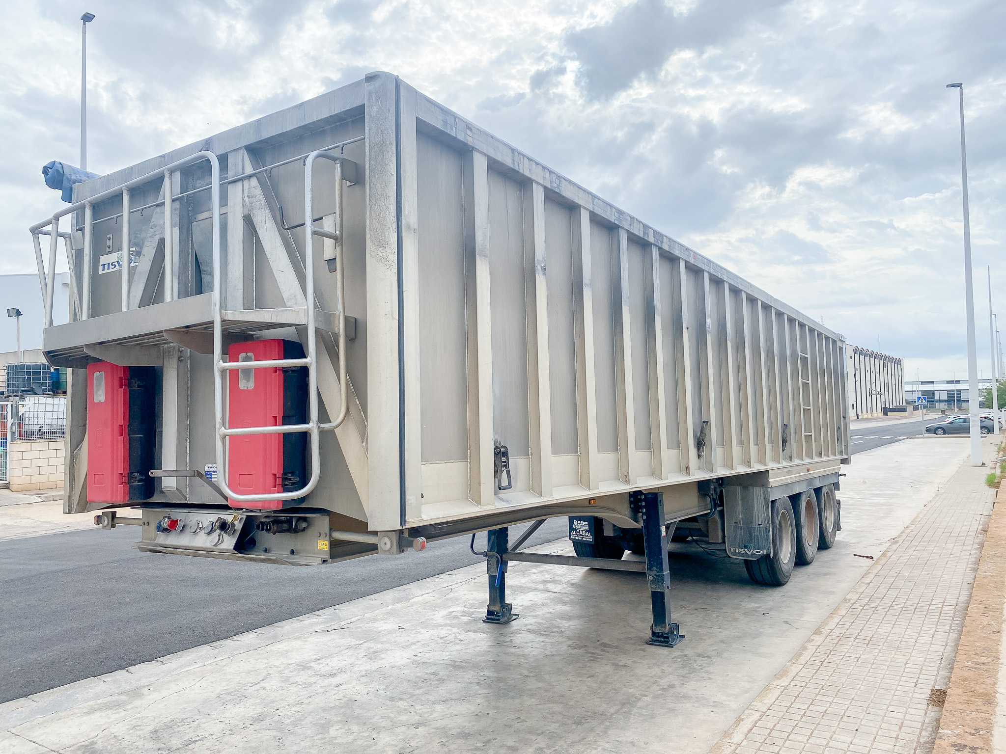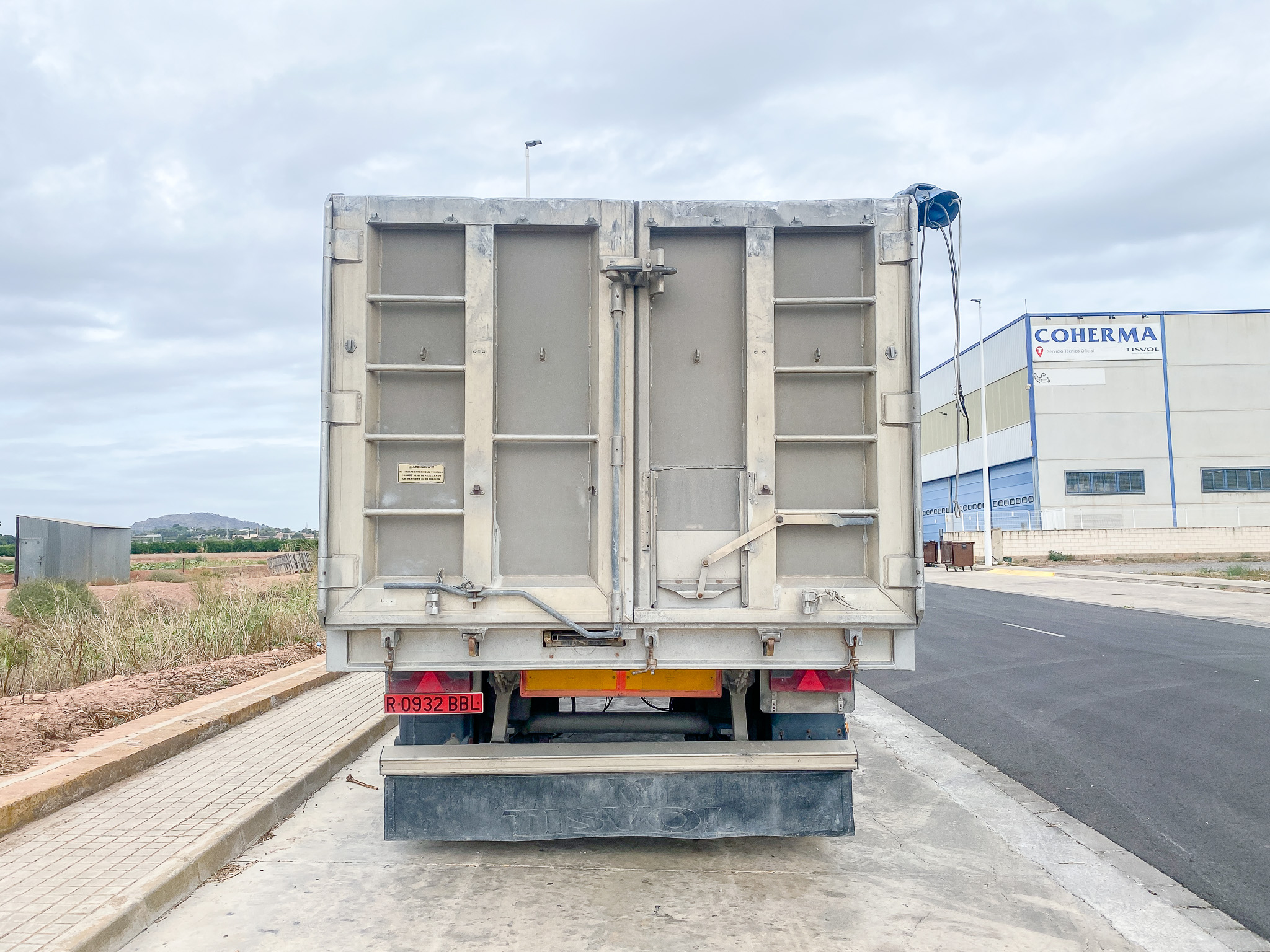 Semirremolque Tisvol de 47 m³ del año 2002, con una longitud de 11.000 mm y altura lateral de 1.800 mm. Vehículo de aluminio integral con caja de costillas en aluminio, ejes ROR, suspensión neumática y frenos de disco. Dispone de elevador en el 1º eje, cilindro exterior marca Hyva, llantas mixtas (3 de aluminio y 3 de acero) y toldo con apertura al lateral. Puerta universal (basculante y libro).