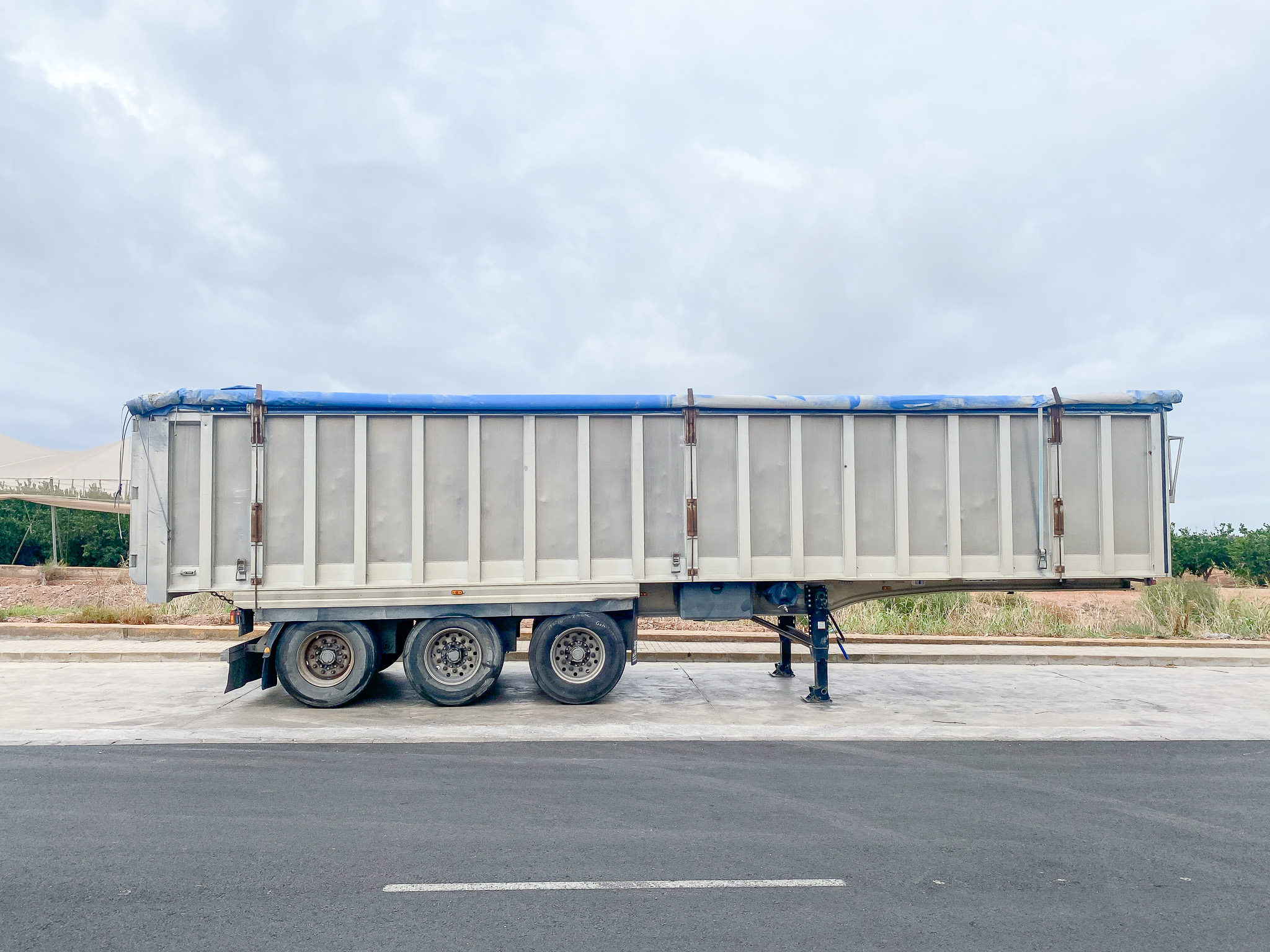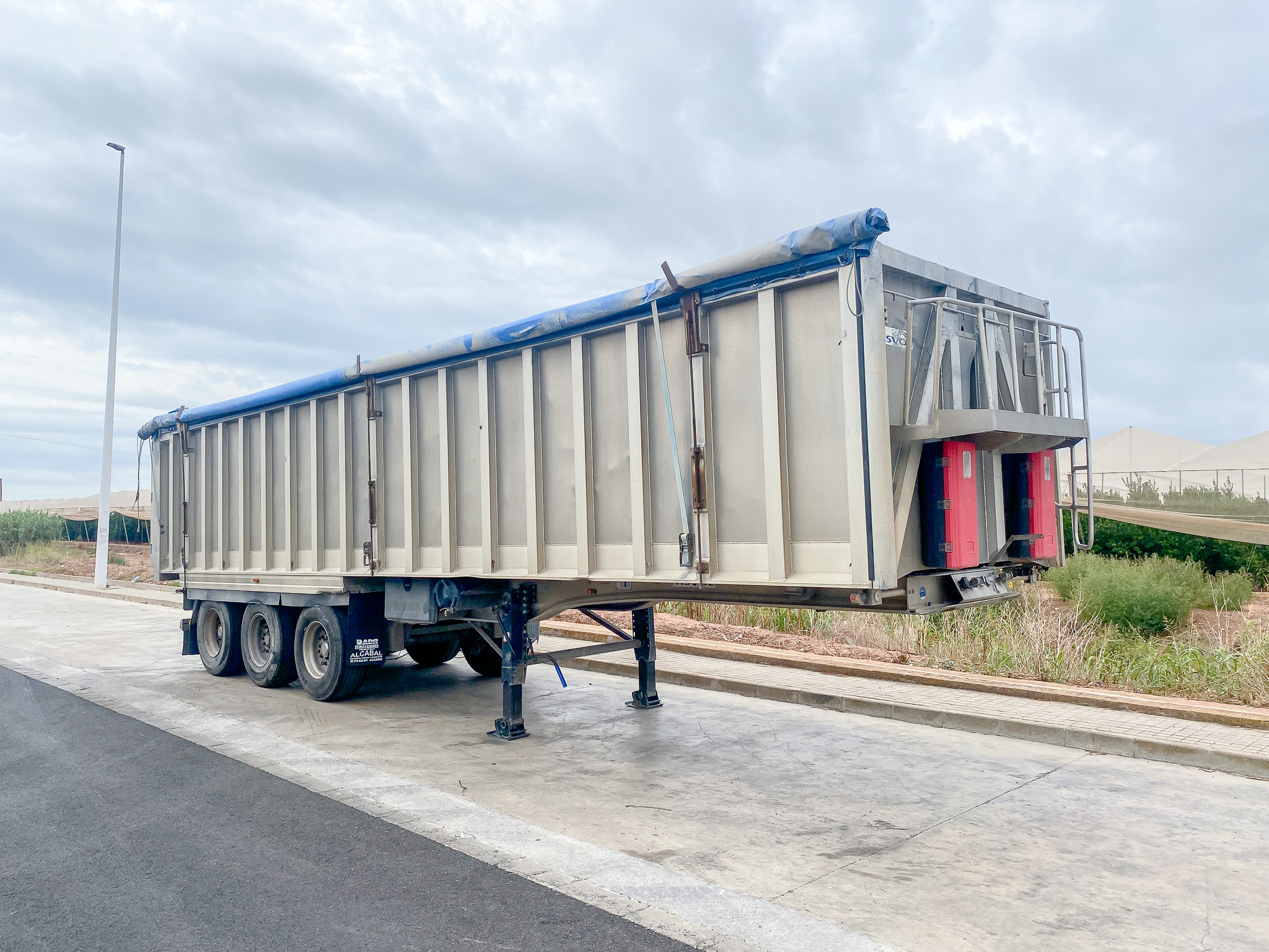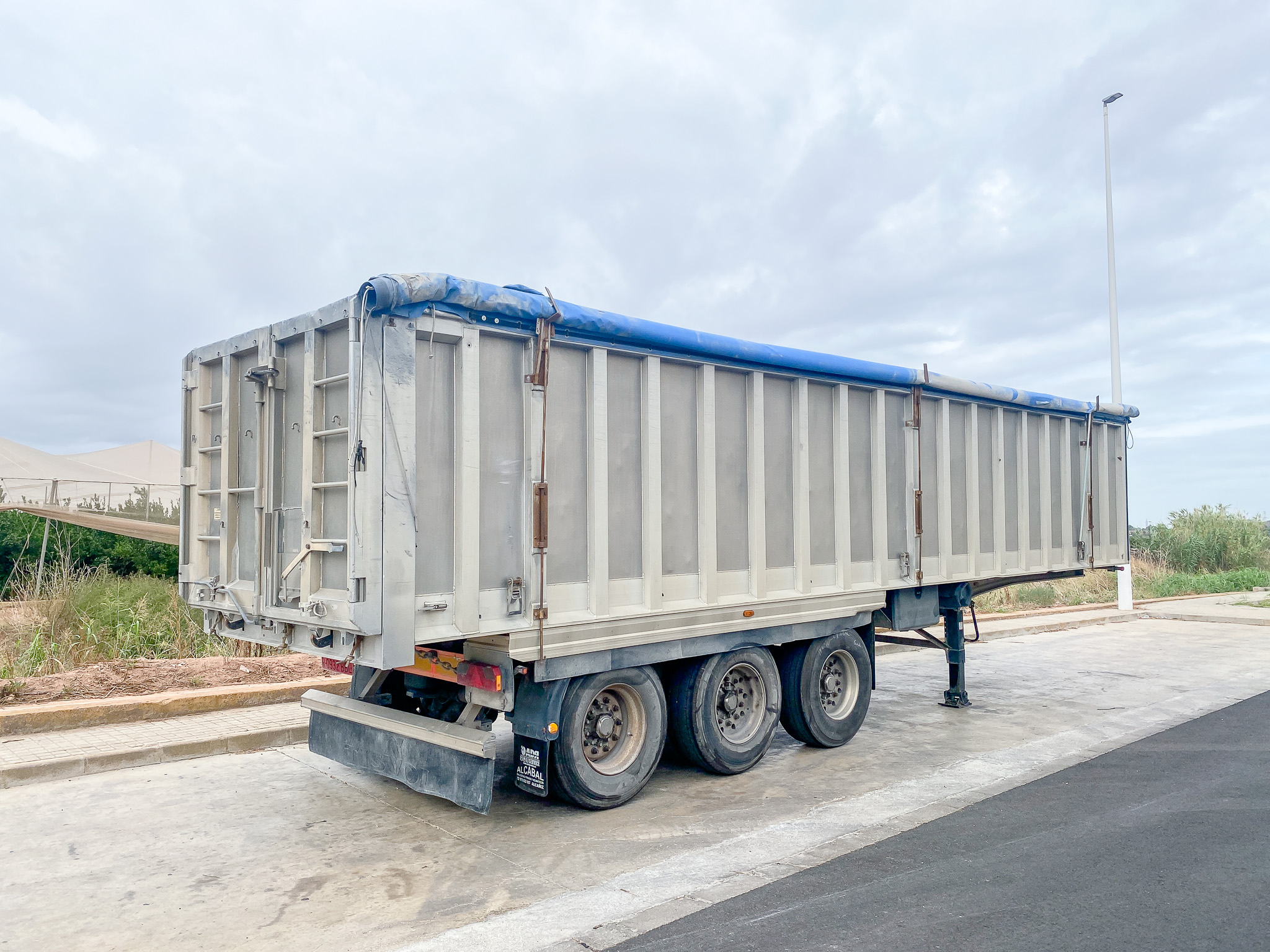 Semirremolque Tisvol de 47 m³ del año 2002, con una longitud de 11.000 mm y altura lateral de 1.800 mm. Vehículo de aluminio integral con caja de costillas en aluminio, ejes ROR, suspensión neumática y frenos de disco. Dispone de elevador en el 1º eje, cilindro exterior marca Hyva, llantas mixtas (3 de aluminio y 3 de acero) y toldo con apertura al lateral. Puerta universal (basculante y libro).