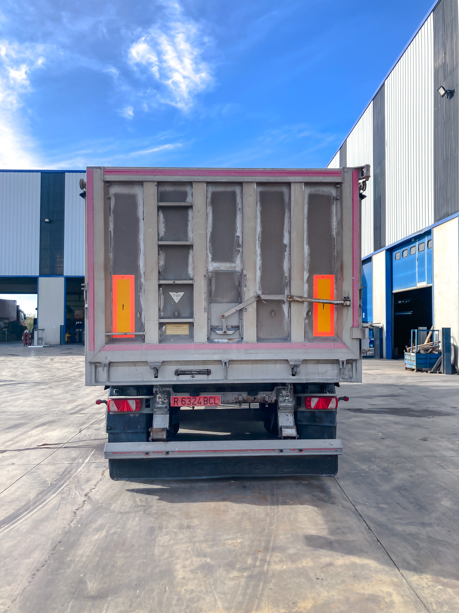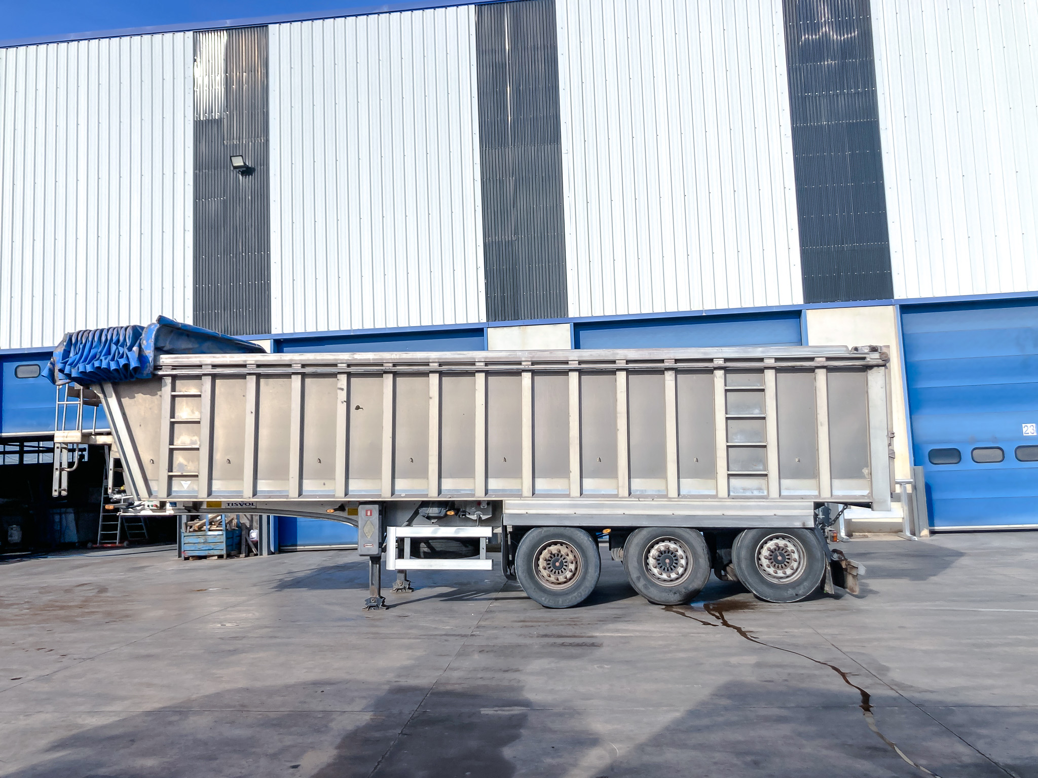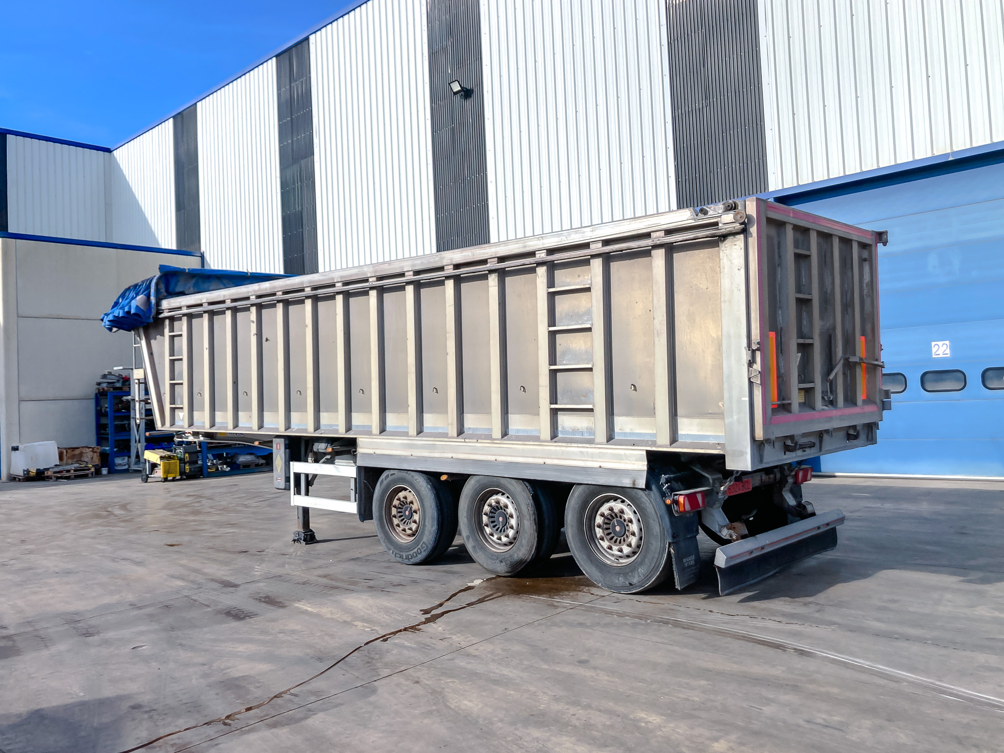 Semirremolque Tisvol de 38 m³ del año 2011, con una longitud de 9.500 mm y altura lateral de 1.700 mm. Vehículo de aluminio integral con caja de costillas en aluminio, equipado con ejes SAF, suspensión neumática y frenos de disco. Dispone de elevador en el 1º y 2º eje, cilindro exterior marca Hyva, llantas de acero y toldo corredero automático eléctrico. Puerta basculante y lateral.