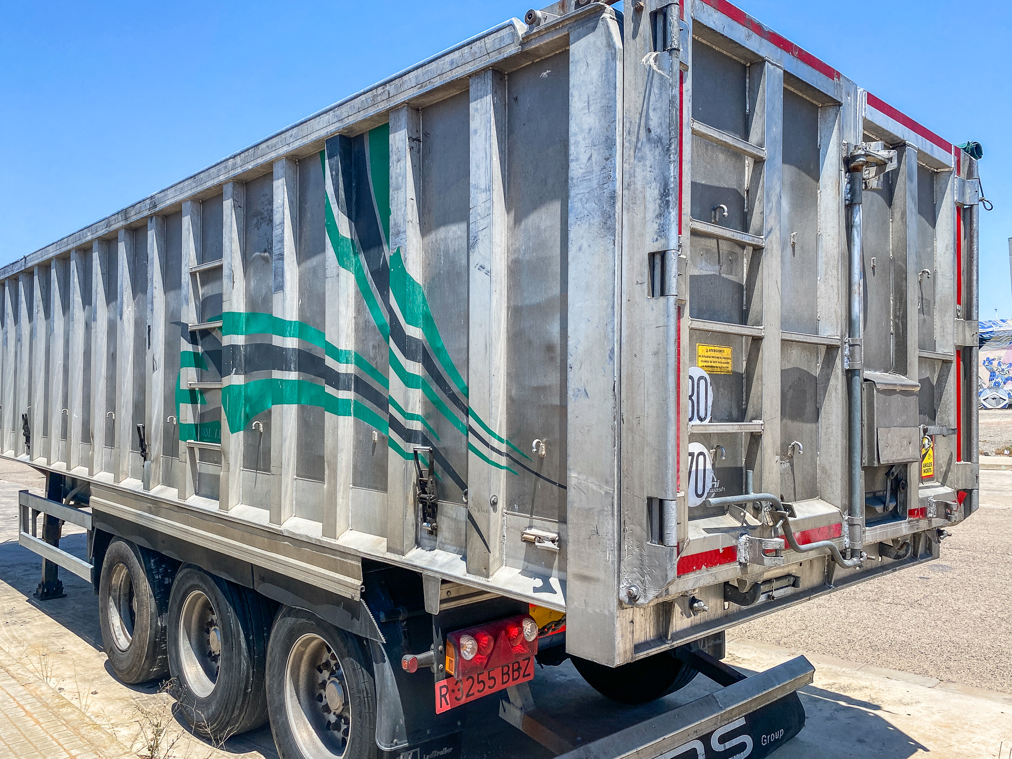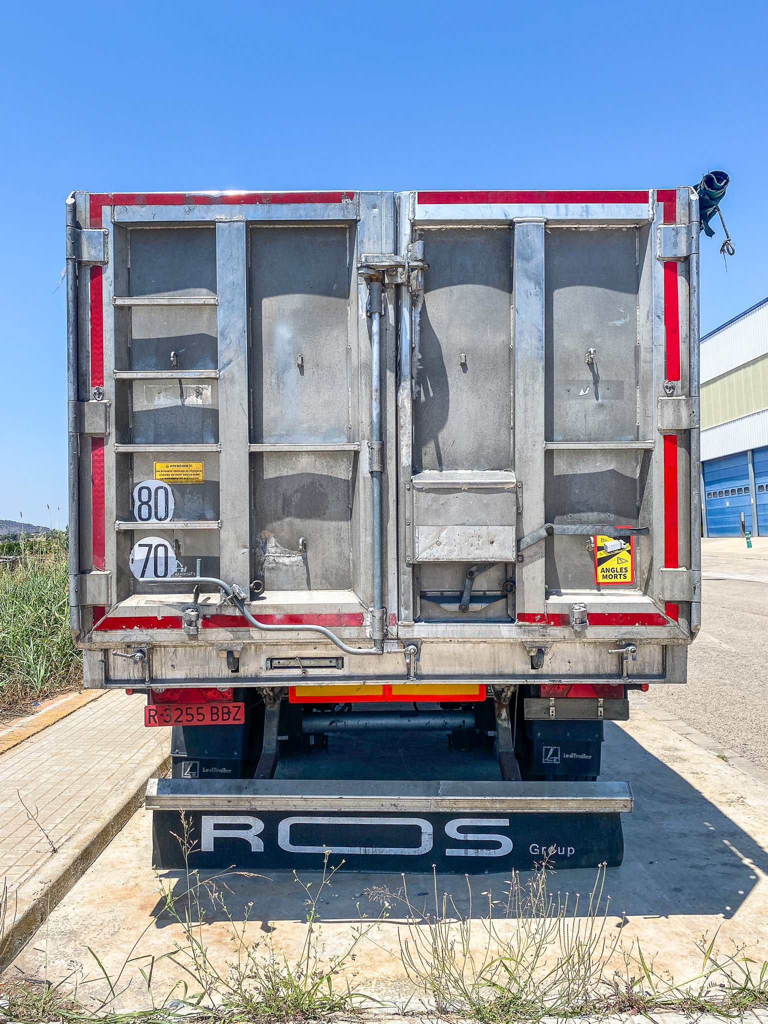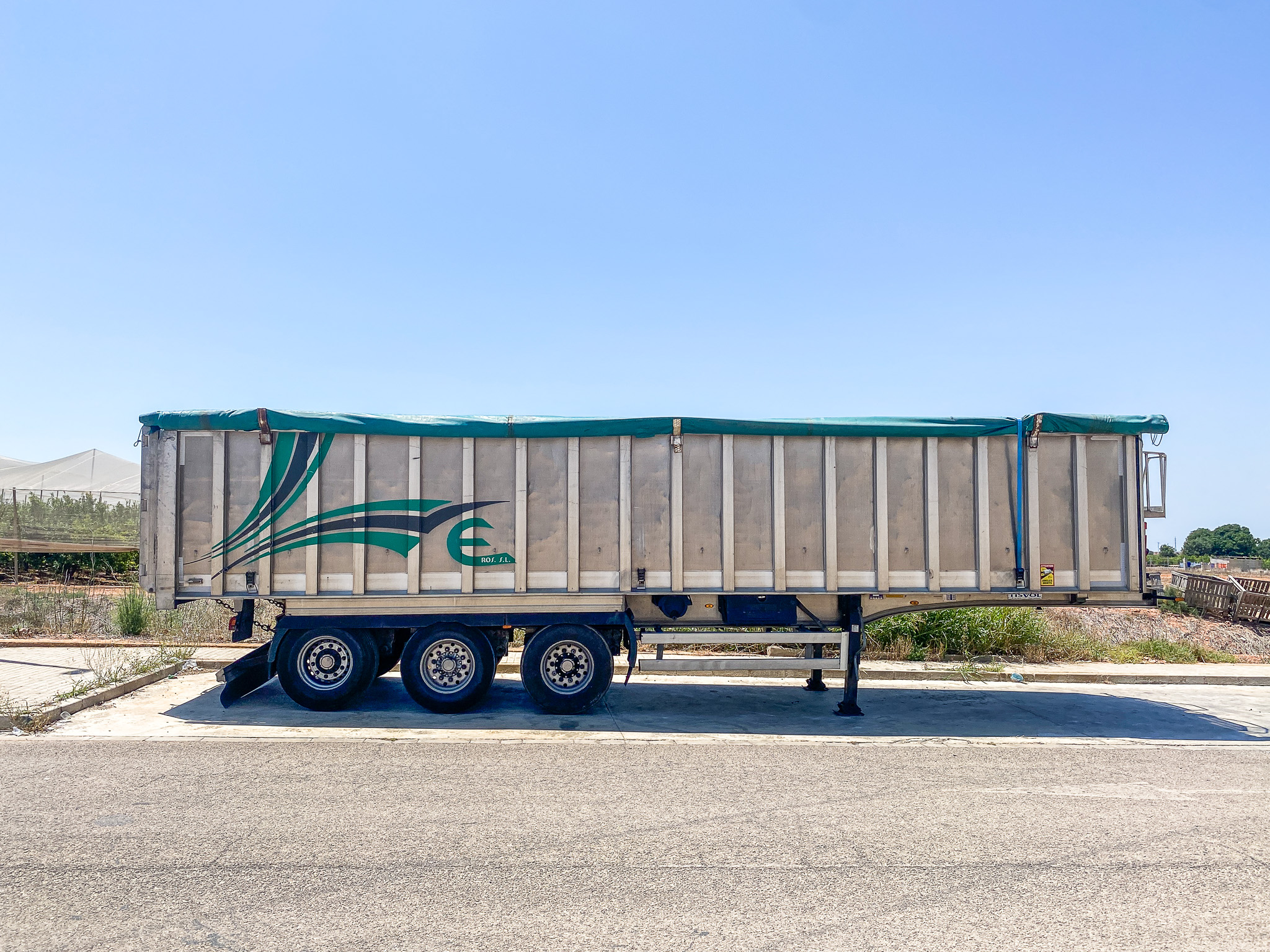 Semirremolque Tisvol de 46m³ del año 2006, longitud del vehículo 11.000 mm y altura de 1.800 mm, vehículo de aluminio integral. Ejes ROR, suspensión neumática, frenos de disco, elevador en 1º eje con llantas de acero, caja de costillas en aluminio, cilindro exterior de campana marca Hyva, ABS, y toldo de apertura al lateral. Puerta universal (basculante y libro).